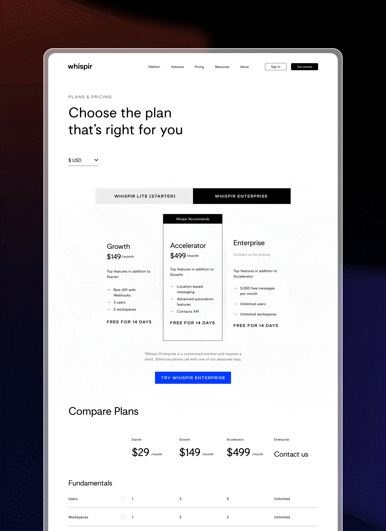 Success of a proper redesign is more than how it is visually presented to the world. Understanding Whispir as a brand and product and figuring out how it compares amongst its competitors was the foundation for a meaningful redesign.